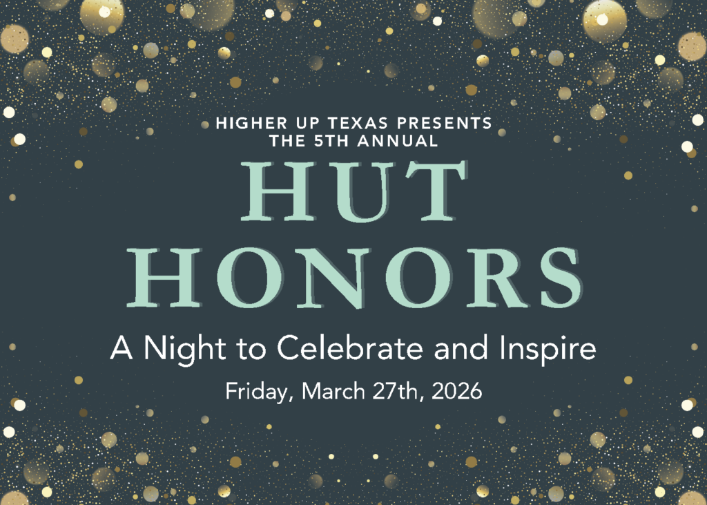 Higher Up Texas is a Community; a Family; a MOVEMENT. Higher Up Texas is a two-part program that works with young adults ages 17-23. In part one, HUT is a 2 hour per week class for high school seniors that teaches the tools and skills needed for adulthood. After HUT students graduate high school, they continue into Higher Up Phase 2 (HP2). HUT Phase 2 is a support system where everyone leans on each other to navigate adulthood and its challenges. Everyone empowers and encourages one another.
